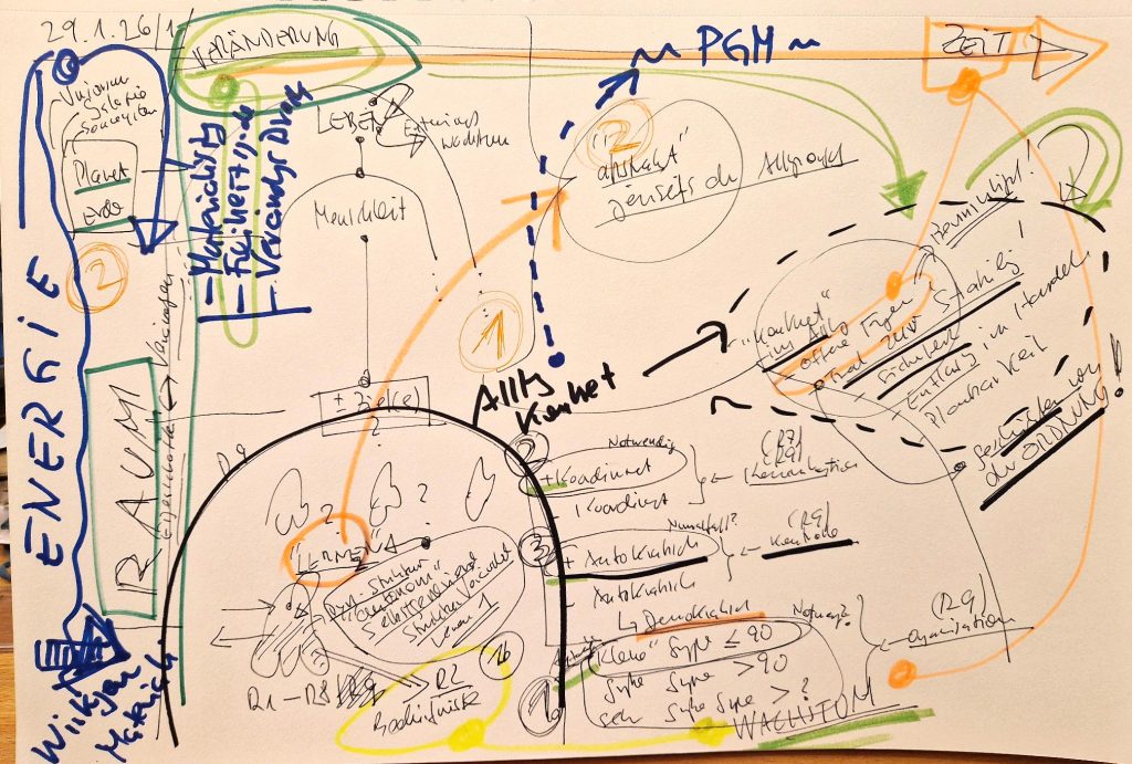 SKIZZE : Diese Skizze ist ein Artefakt, welches der Mensch Gerd erstellt hat, um die nachfolgenden Gedanken zu organisieren. Diese Gedanken bilden keine ‚1-zu-1 Entsprechung zum Artefakt‘, sondern wurden vom Artefakt nur ‚angeregt‘. Allerdings wären die nachfolgenden Gedanken wohl kaum in dieser Struktur zustande gekommen, wenn das Artefakt nicht erstellt worden wäre.