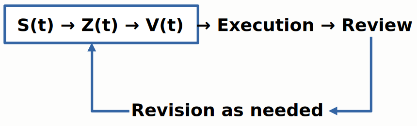 Each loop contains the question: Does Z still apply? Does V still apply? Has S changed?